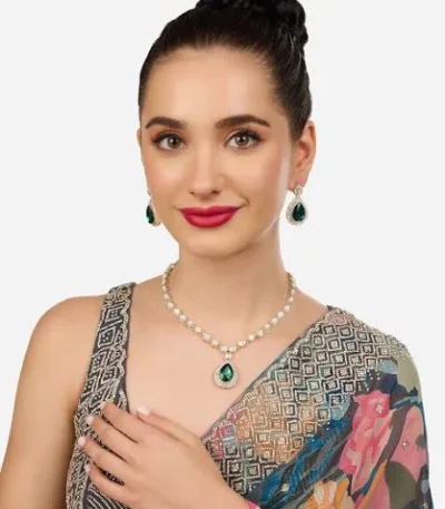 Salty Kiara Advani Green Emerald Necklace and Earrings Set
